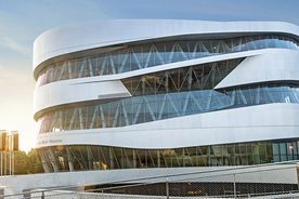 奔驰博物馆的建筑造型独特,外部的金属质感配上曲线设计,内部的“双螺旋”展览通道,最大程度地提高了空间利用率。馆内展现了奔驰130年的历史,馆中的160辆展车中不乏鸥翼跑车和银箭等传奇车型。