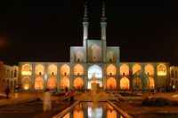 阿米尔•乔赫马克建筑群是亚兹德最重要的历史建筑之一,位于老城区,是亚兹德的重要景点之一。这个宝贵的建筑群是街道的焦点,包括清真寺、Tekye(举行宗教哀悼仪式的地方)、Sati Fatemeh陵墓、Haji Ghanbar集市、Sati Fatemeh蓄水池、棕榈和阿米尔•乔赫马克蓄水池。 阿米尔•乔赫马克建筑群可以追溯到伊斯兰教历9世纪,由Amir Jalaluddin Chakhmaq建造,他是Shahrukh Teimouri(771-911 AH,1370-1506 AD)的指挥官。这座城市繁荣的奠基人在清真寺的北部建造了一个正方形建筑,该正方形建筑现在仍保留在亚兹德的市中心。 该广场在萨法维时代曾以相同的名字而闻名。 该建筑的某些部分,包括在旅馆上方建造的Chahar Suq,在阿拔斯国王时期进行了重建。清真寺前的广场在公元13世纪初期已转变为Tekye。 但是,很明显,这个地方没有被用作宗教场所,因为这种地方是在萨法维德时代之后建造的。 这栋建筑不是由阿米尔•乔赫马克命令建造的,只是归因于他。阿米尔•乔赫马克的主体建筑是亚兹德著名的标志之一,有着高高的房顶、有趣的前院、巨大的圆顶和美丽的露台。 该建筑是用泥砖建造的,装饰有精美的灰泥纹饰。