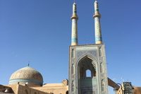 亚兹德的聚礼清真寺实际上是由三个不同历史时期建造的清真寺组合而成。清真寺的原建筑也是在一座萨珊时期火神庙的基础上建造的。丰富的历史文化背景以及清真寺壮观的建筑和华丽的装饰使其成为伊朗最美丽的古清真寺之一。 亚兹德聚礼清真寺已有900年历史,是亚兹德省最宏伟、最美丽的历史建筑和名胜古迹之一。它位于城市中心,有高高的宣礼塔。过去,清真寺坐落老城区的正中央,位于围墙中间。