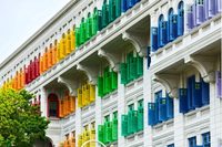 这里以前是警察局,现在是新闻及艺术部大厦,google map的介绍是: Once a police station, this building built in 1934 features over 900 rainbow-hued louvered windows.