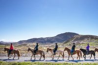 骑马游览冰岛火山区,当地导游对该地区了如指掌,从雷克雅未克出发,全程 1.5-2 小时,可选择酒店接送。在 Hafnarfjörður 的 Íshestar 马厩,您可以在优质的骑马路径上与友好的马匹共舞。 穿过熔岩场,沿着美丽的绿色山坡骑行。在熔岩中寻找不同的岩层,同时体验这些马匹特别平稳的步态,称为 tölt。 Íshestar 马厩在冰岛独一无二,设施一流,环境优美,位于 Hafnarfjörður 镇外,距离雷克雅未克约 20 分钟车程。设施和迷人的地区为骑马、徒步旅行和其他户外活动提供了无尽的机会。 马厩的更衣室设备齐全。为所有客户提供保暖工作服、雨具、马靴和适合其尺寸的头盔。Íshestar 员工以找到适合个人需求的马匹并确保每个人的安全为荣。