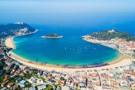 贝壳海滩位于西班牙巴斯克地区的圣塞瓦斯蒂安。海滩呈月牙形,细沙海岸长约 1.2 公里。这里设施齐全,有淋浴间、躺椅、遮阳伞、酒吧和餐厅等。