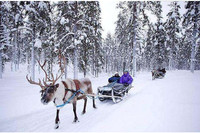 近距离接触喂养驯鹿和哈士奇,北极狐等动物互动,体验驯鹿雪橇,雪上香蕉船的速度与激情,自由体验雪地滑梯,与萨米人合影留念。