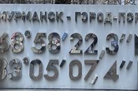 在摩尔曼斯克市区西南部,竖立着一个标志塔,书写有北纬68度58分、东经33度03分的字样。这标志着该城已深入北极圈内300多千米,是个地地道道的北极港城。