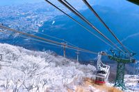 别府索道为九州之最,可搭载 101 人,约 10 分钟即可到达海拔 1300 米的地点!任何人都能登上鹤见岳的顶峰,春季观赏樱花和九州高山独有的九州杜鹃,冬季欣赏玉树琼枝银装素裹的世界,领略四季不同的自然风光。
