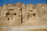 Naqsh-e Rostam位于距波斯波利斯不远处的一座山崖,有四个在岩壁上凿出来的十字形帝陵(陵墓本身叫Necropolis),从右到左分属薛西斯一世、大流士一世、阿塔薛西斯一世和大流士二世。每个陵寝上方都雕有波斯智慧之神阿胡拉·马兹达像,代表着君权神授。陵寝整体保存完好,但中间墓室石板被后来征服阿契美尼德王朝的亚历山大大帝破坏,墓室现在已成为鸽子窝。