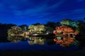 六义园是江户时代最具代表性日式庭院之一,融入了和歌情调,是典型的回游式假山泉水庭园。秋季时园内绚烂的枫叶倒映在庭园中央的积泉池之上,引得众人纷至沓来。最特别的是赏夜枫活动,入夜后的六义园在幽暗灯光的烘托之下枫叶多了一份神秘与梦幻。