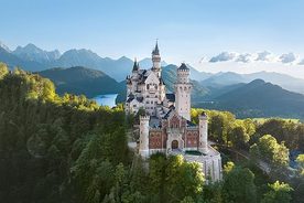新天鹅堡建于1869年,是德国的旅游名片,城堡中拥有大量天鹅雕塑,因此得名。新天鹅堡位于德国的南部边境的阿尔卑斯山间,在一座近千米高的山顶上,是迪士尼乐园中经典城堡的原型。