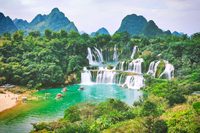 随后乘车前往崇左大新(车程约1.5小时),前往游览【德天跨国瀑布】,它横跨中国、越南两个国家,是亚洲首屈一指的大瀑布、世界第二跨国瀑布,特别安排坐竹筏体验在河面上近距离观瀑拍照。