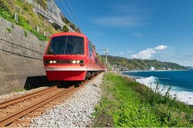 伊豆急行铁道,沿着伊豆半岛的东海岸行驶,一路海风相随,海上风光旖旎,温柔地抚慰游人。这条线路的列车上,配备了面朝大海的全景席位,透过车窗就能眺望碧蓝的大海、可爱的岛屿、烟雾缭绕的温泉街。 推荐体验乘坐:伊东站-城崎海岸站
