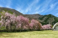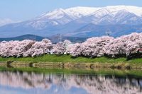 以庄严的藏王连峰为背景,在白石川堤岸上盛开的主要是染井吉野樱的“一目千本樱”。清澈的白石川呈现出蓝色,千本樱展现出华丽的淡红色,而藏王连峰上残留的雪则显出白色——这三层色彩交织而成的景色不仅是当地居民的骄傲,也是只能在此地才能见到的绝美风景。