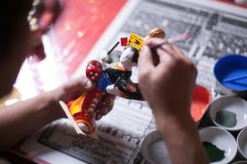 「DEKO」在方言中意指「人偶」。日本的人偶历史始于「土偶」,随后发展出木制的「木偶」。原本「木偶」的发音是「DEKU」,后来逐渐转变为「DEKO」,成为泛指所有人偶的词汇。高柴地区在江户时代属于三春藩的领地,当地有四间「DEKO屋敷」工坊,专门制作拥有300多年历史的传统工艺品「三春张子」和「三春驹」。由于这些工坊也出售纪念品,吸引了许多游客前来参观,因此工坊聚集的地方逐渐成为了观光胜地「高柴DEKO屋敷」。