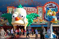 这完全是一个室内3D过山车,在《辛普森一家》的动画中,一个3D屏幕和一辆可升降的过山车座位就可以让您进入一个全新的世界。在这里您乘坐着全新的虚拟云霄飞车,一路飞驰,领略急速和冲撞的刺激,进行一场时而捧腹大笑时而惊险刺激的奇妙之旅。