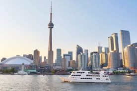 随后在多伦多港乘坐游船,欣赏城市天际线和日落美景。