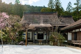 【宿坊】在日本的历史,可以追溯到千年前的平安时代,最初是指寺庙为僧侣提供的住宿之处,到了现代,普通民众也可以于古寺内留宿,感受宿坊文化。本次体验将到访圣地高野山的一座有着千年历史的宿坊处,寺庙古朴,庭园清幽,曾是 16 世纪后期的智将真田昌幸、幸村父子隐居的场所。在此,可以行“阿字观”冥想法、抄经、朝之勤行、品精进料理(素斋),于清净古刹之中感悟佛法禅意。宿坊“莲华定院”内,有贵宾室、特别室等数种房间形式,室内风格为传统和式设计,装饰有日本画,提供了雅致而舒适的休憩空间。多数房间能够欣赏到庭园的枯山水及林木等景致,部分房间还带有室内浴室,可以赏景泡汤,清心净体。