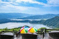 【三方五湖天空展望台】,三方五湖是日本国若狭湾国定公园的风景名胜地。作为具有国际性的重要湿地资源,2005年被《拉姆萨公约》注册。三方湖、水月湖、管湖、日向湖、久久子湖有淡水、海水、微咸水等五个湖各自不同的特性。