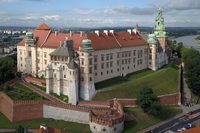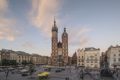 克拉科夫老城中心广场集市建于 1257 年,是欧洲最大的中世纪广场之一。它占地约 4 公顷。广场中央是纺织会馆,四周有圣玛丽教堂、市政厅钟楼等建筑。这里常举办节庆活动,2005 年被选为世界最佳广场。