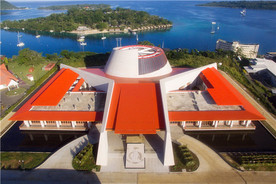 前往中国驻瓦努阿图大使馆和瓦努阿图国家议会中心门口拍照留念。而后前往参观国家会议中心,这座由中国援建的会议中心内可承办千人以上的会议和大型活动是当地最宏伟的建筑之一。浏览国家博物馆,可以看到有关瓦努阿图历史和文化的丰富展品。并可以看到驻馆艺人,现场创作瓦努阿图国粹“沙画”,艺人仅凭借一根灵巧的手指,流畅的勾画出脑海中复杂优美的图案。位处于半山的二战纪念碑,背靠国家储备银行,侧面是新建的总统府邸,正面正对维拉辽阔的海景。放眼过去,翡翠色的泻湖和远近错落的离岛尽收眼底。最后可以漫步与维拉港几条主要的街道,采买瓦努阿图特色的手工艺品。