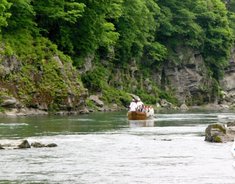 随后前往埼玉县【长瀞峡泛舟】游船--长瀞最具魅力的活动之一是自20世纪初起开始举办的游船活动,每年这一活动都能吸引20万名游客的来访。船夫操奖的船只载着游客时而湍急、时而和缓的顺流而下,游客们还能沿途欣赏美丽溪谷的自然景观。