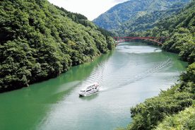 游船在庄川峡小牧水坝和大牧温泉之间悠悠前行,往返需时 1 小时左右,四季不同风景皆随着船儿缓缓移动。新绿和红叶季节的美景自不必言说,宛若水墨画的雪景亦分外妖娆,令人如痴如醉。