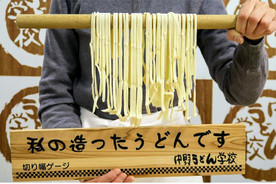 赞岐乌冬面外观滑嫩白亮,一根根切出来的面条棱角分明,面条很有弹性,口感既有嚼劲又很柔滑,在吃法上也能有各种各样的变化。只需要1.5个小时,乌冬面师傅就能教你亲手做一碗乌冬面。体验过程颇有趣味,每位体验者都能玩得不亦乐乎。