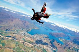 早上体验【瓦纳卡跳伞】,跳伞过程中可清晰观赏瓦纳卡湖、哈威亚湖的“牛奶蓝”湖面及世界遗产阿斯派林山国家公园。