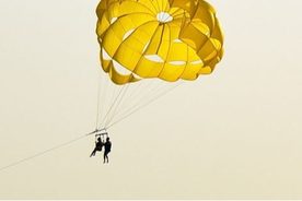 游客身缚特制的降落伞,通过缆绳与海上的快艇相连。快艇在海面高速行驶,产生的拉力使降落伞充气并将游客带离海面,游客从而在空中跟随快艇的牵引进行滑翔,可俯瞰壮丽海景。