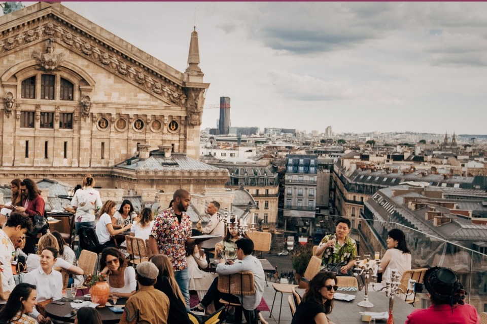 Créatures 餐厅是位于巴黎老佛爷百货奥斯曼主楼屋顶的一家热门露台餐厅。餐厅拥有绝佳的观景位置,可 360° 俯瞰巴黎市区,埃菲尔铁塔、巴黎歌剧院、圣心教堂、蒙马特高地等著名地标尽收眼底,为食客提供了独一无二的视觉享受。由知名厨师 Julien Sebbag 主理,菜单为 100% 素食,以新鲜的当季食材打造,风味清新,灵感来自地中海料理,如黄瓜脆沙拉、烤小西兰花、土耳其鸡蛋配拉布尼和榛子酱等,还有榛子酥、巧克力馅饼等美味甜点。餐厅营造出复古加州风情的氛围,暖黄色和橙色的色调让人联想到美国西海岸的落日余晖,店内还精心摆放着收藏品、书籍和黑胶唱片,搭配回收材料制作的环保装饰,给人一种既温馨又独特的感觉。