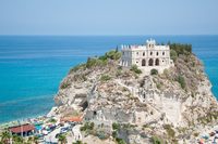 圣玛丽亚德尔伊索拉圣所教堂,位于意大利特罗佩亚山顶,这座 11 世纪的圣所将海滩一分为二,从老城区的大多数位置都可以看到它,因此它成为特罗佩亚的象征。 直至今天,它仍然是一个重要的宗教场所,也是卡拉布里亚大区备受欢迎的婚礼目的地。