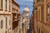 瓦莱塔依山而建,城内多处陡坡,老铸币街是其中颇具特色的一条,窄街两旁遍布石灰岩建筑,呈现出一幅典雅秀美的画卷,是瓦莱塔一张经典的景观名片。