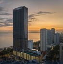 从槟城出发,乘车行驶在槟城跨海大桥上,欣赏海峡两岸的壮观景色.