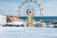 【祝津岛摩天轮】无论是在白雪皑皑的冬天还是阳光明媚的夏天,这里都是拍照的绝佳地点。冬天时,雪花与摩天轮相映成趣;夏天则面对着湛蓝的大海,浪漫至极。注:冬季停运不登摩天轮,可拍照打卡