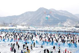 【 冰之国度~华川山鳟鱼庆典 】( 含体验冰钓鳟鱼/品尝烤鳟鱼/体验冰上雪橇/观赏冰雕 )~于韩国冬季最快结出厚实冰层的江原道华川举办,自开办以来,已吸引数百万甚至千万观光客参与。参与此庆典活动除了可以在冰层上冰钓山鳟鱼外,还能体验在雪与冰上快速奔跑的雪橇与雪车等各种冬季游乐设施。冰钓山鳟鱼体验共准备了1万2千个冰钓口,而华川为水深2m且水质清澈的河川,因此可以透过冰钓口看到冰层底下优游自在的鱼群。为了确保每位游客都能冰钓成功,庆典期间每天都会放入1~2吨的山鳟鱼,相当适合家人、朋友前来玩乐体验。