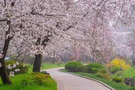 位于济州市山脚上的济州大学正门附近有名的樱花大道。这里的海拔比别的地方要高一些,所以就算别的地方樱花谢了这里也还能看见樱花。学校院里也可以看到很多樱花。