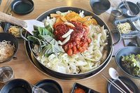 可自由品尝当地特色春川铁板鸡。