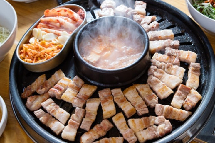 韩国必吃的人气美食,明洞无限续添的五花肉烤肉专门店 “荒谬的生肉”特色