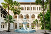 新加坡莱佛士酒店的标志性水池,外观特色鲜明。水池中央,雕塑与喷泉巧妙融合,水流细腻如丝,形成一幅动态的艺术画卷。其设计独特,周围绿植环绕,为水池增添自然生机。白色建筑背景与水池相映,更显酒店优雅大气。整体而言,水池细节精致,匠心独运,不仅提升了酒店的魅力,也成为了新加坡的一道亮丽风景。